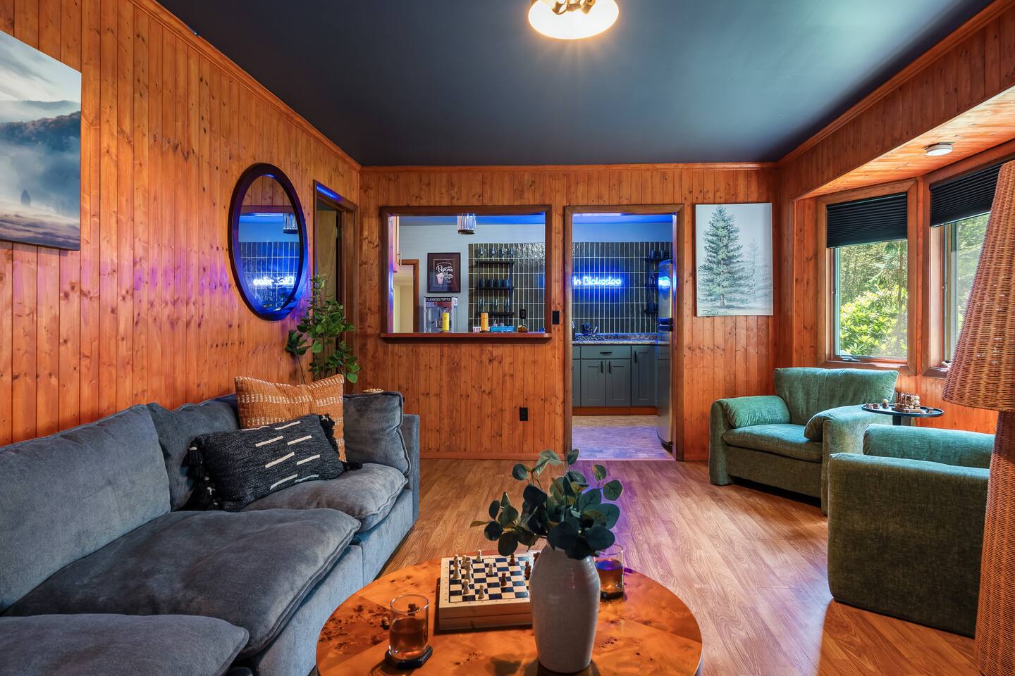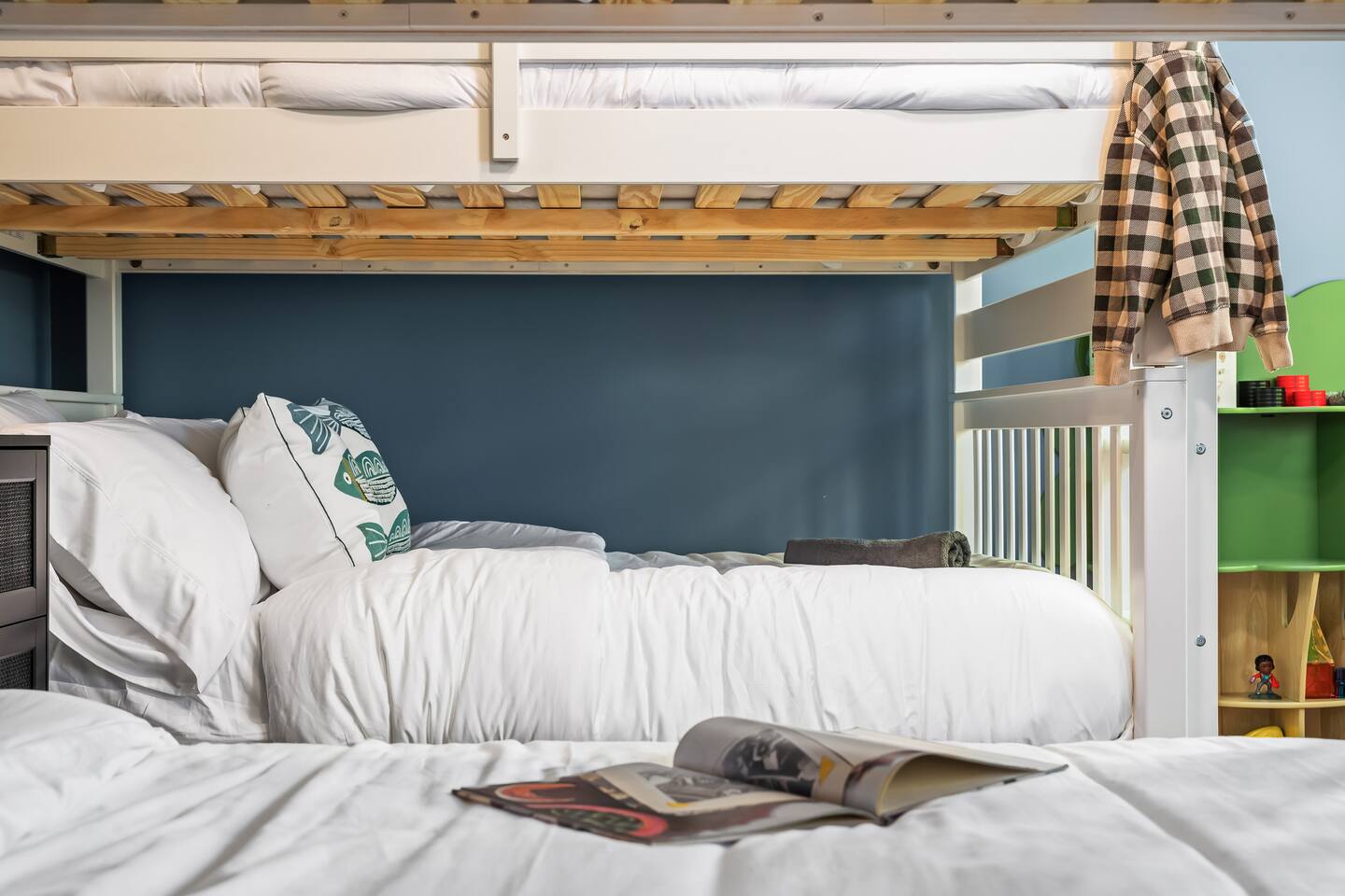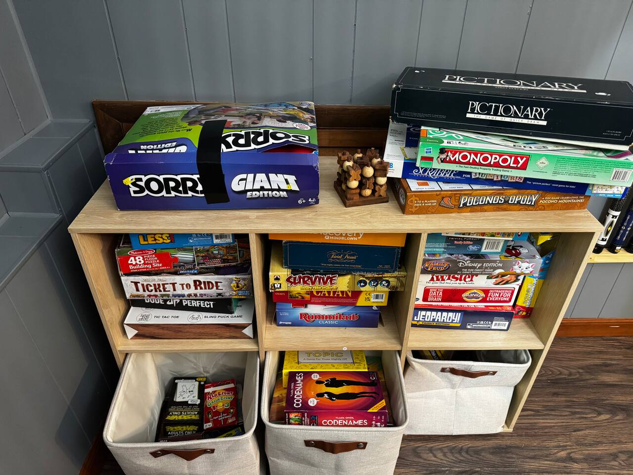 Stylish, home-like décor makes it feel like a family’s weekend ski or lake home, not a sterile rental. This isn’t just a vacation house—it’s an entertainment headquarters for your whole crew. 🎉 Discover our Pocono cabin: Indigo Pines Lodge is stylish, family-friendly, and surrounded by the natural beauty of the Poconos. Perfect for a family reunion or a fun-filled friends trip. Rustic cabin interior design with modern amenities, indoor games and outdoor adventure. With five bathrooms—more than most rentals in the area—everyone can get ready without waiting in line. 🏡 House Highlights ✅ Sleeps 16 Comfortably – Perfect for multigenerational families & groups ✅ Lake Access-10 minute walk to Lake Sinca, 15 minute drive to Lake Harmony ✅ Private Hot Tub and Indoor Sauna – Relax under the stars after a day of adventure ✅ Movie Room & Popcorn Bar – Large room with comfy couch plus lounging chairs. Theater style popcorn bar with 8 different popcorn seasonings. ✅ Fire pit ✅ Game Room Fun – Poker table, pool table and over a dozen board and card games. ✅ Indoor bar – Extra kitchenette bar with fridge and extra kitchenwares. ✅ Arcade room--basketball, 3 arcade games and bean bags to relax and play video games. ✅ Fully Equipped Kitchen – Everything you need to cook delicious meals. Includes a gas range, premium appliances, coffee bar (complimentary coffee and tea). ✅ Cozy Living Room – Fireplace, plush seating & 72" Smart TV for movie nights ✅ Fast WiFi + Smart TVs – Stay connected & entertained ✅ Outdoor Space-private yard, fireplace, sauna, hot tub and yard games ✅Large deck with seating for 18, 2 lounge seating areas. ✅Under deck HOT TUB. Perfect all year all weather!! with outdoor bar and hanging chairs. ✅Parking for 8+cars in circular driveway 🛏 Sleeping Arrangements *Huge bedrooms, multiple living areas, and 2 floors so kids and adults can spread out. *The main floor has four bedrooms including both master suites and two additional secondary bedrooms. The lower level has three more rooms including two secondary bedrooms and a kid's room/playroom with bunks. 💤 Master Bedroom #1 (Upper Level) – Queen bed on suite , premium luxury linens, 43” Smart TV, en-suite private ensuite bathroom with large soak tub, and walk-in shower 💤 Master Bedroom #2 (Upper Level) --Extra large room with King bed, & seating area and 43” Smart TV. 💤 Bedroom 3 (Upper Level) – Queen bed, premium luxury linens. 💤 Bedroom 4 (upper Level) – Queen bed, premium luxury linens. 💤 Bedroom 5 (Lower Level) – ,King bed, premium luxury linens. 💤 Bedroom 6 (Upper Level) – King bed, premium luxury linens. 💤 Bedroom 7 (Lower Level) – 4 Bunk beds (Full over Full), premium luxury linens, toys, books and games. 🎯 Ultimate Kids Arcade Room Challenge your friends and family in the fully loaded game room, featuring: 🎮 3 Arcade Machines – Classic & modern games Karaoke Machine Bean bag seating 65" TV for video game fun Ultimate Game room for older kids and Adults 🎱 Pool Table – Fun for all skill levels Poker Table-- 2 dozen board and card games Jukebox- greatest hits Karaoke Machine Large seating area with 75" TV for Movie Night 🍳 Kitchen & Living Space The open-plan kitchen and living area is the heart of the home, featuring: Gourmet Kitchen: Gas range, Instant Pot, blender, griddle and spices. Coffee Bar: Complimentary coffee and tea, and supplies included. Dining Space: Seating for 11 for casual meals. Living Area: 55” Smart TV, gas fireplace and cozy seating area. From sauna heat to hot tub bubbles to a luxurious master suite, every corner of this home is designed for pure relaxation. 🌲Large Private Yard 🛁 Private Hot Tub – The perfect way to unwind after a day out 🔥Indoor Sauna -- Detox and destress in your private sauna with a view 🔥 Grill & Outdoor Seating – Enjoy BBQs with breathtaking views 🚗 Perfect Location – Minutes from Top Attractions! Sleeps 16+ comfortably 🔑 Guest Access Guests have full access to the community lake, picnic gazebo, and playground. The longer you stay, the bigger the discounts.” Inquire now for seasonal discounts. Guests have full access to: entire house, hot tub, sauna & private yard. Private driveway parking (comfortably fits 5-6 cars). High-speed internet, keyless entry, and smart home features. 📋 Things to Note Pool, Sauna and Hot Tub Usage: Follow provided guidelines for safe use. Lake may also be used for catch and release fishing, with proper fishing license. Bear Safety. Rural area where wild animals (including bears) can be spotted, especially at night. Kid-Friendly Features: Pack N Play, high chair, toys and books.