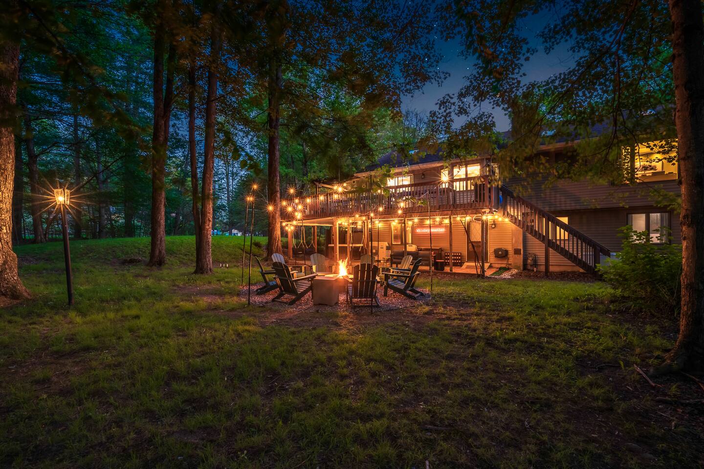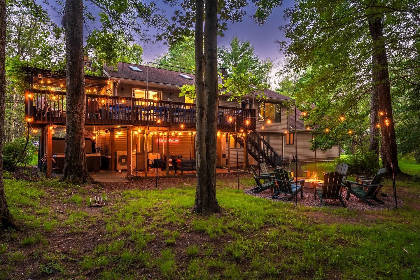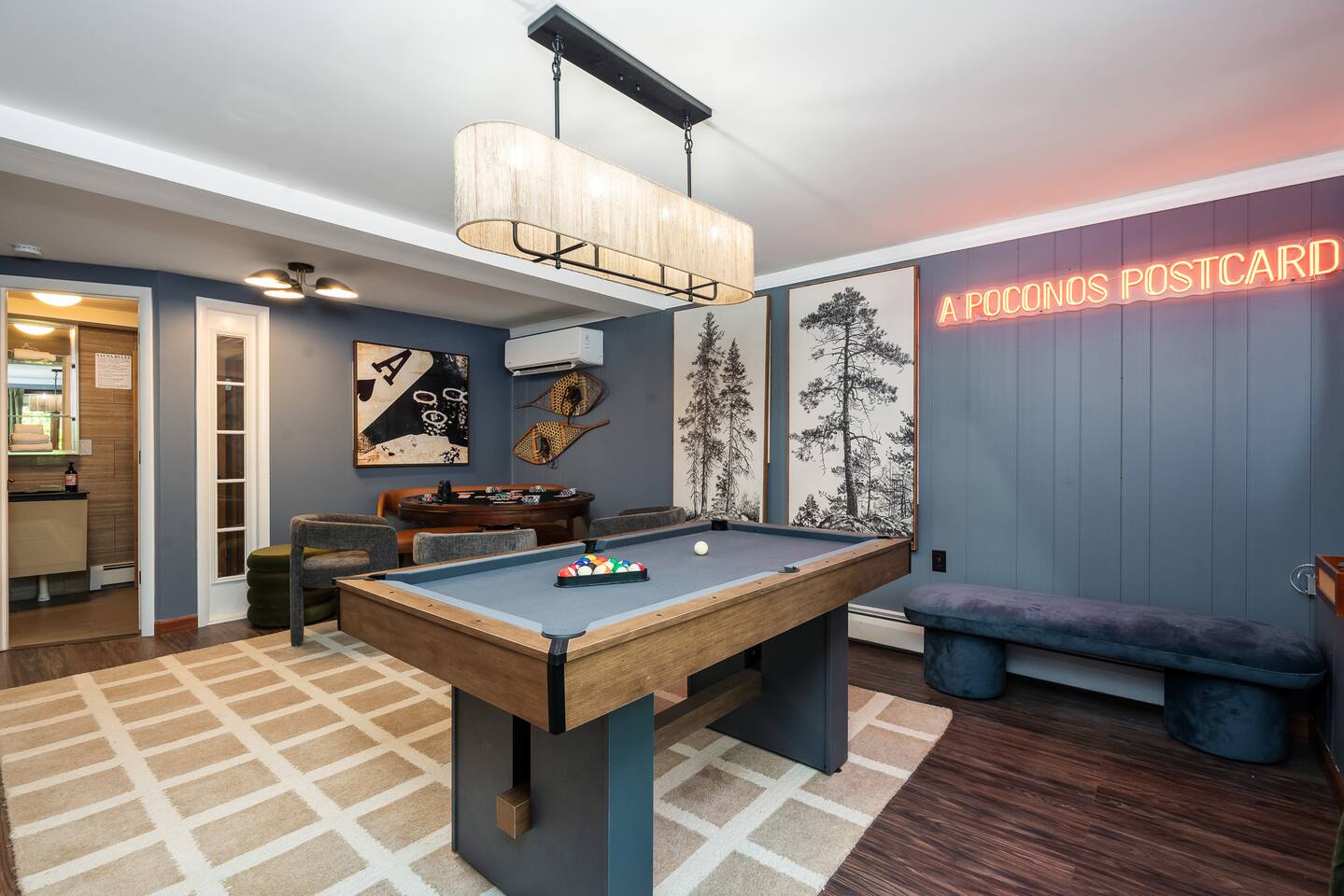 Your family’s dream retreat! Near Pocono lakes & trails (Lakes Sinca and Harmony) 3500 sq ft--separate entertainment and relaxation spaces. sleeps 16+ guests Private Hot Tub & indoor sauna 2 epic game rooms + movie theater 2 Master Suites Fully stocked kitchen 2 bars +grill Fire pit Gather for movie nights, arcade battles, or a soak under the stars. After adventures on the slopes or lake, unwind by the fireplace and rest in hotel-quality beds. Have questions? I usually reply within an hour