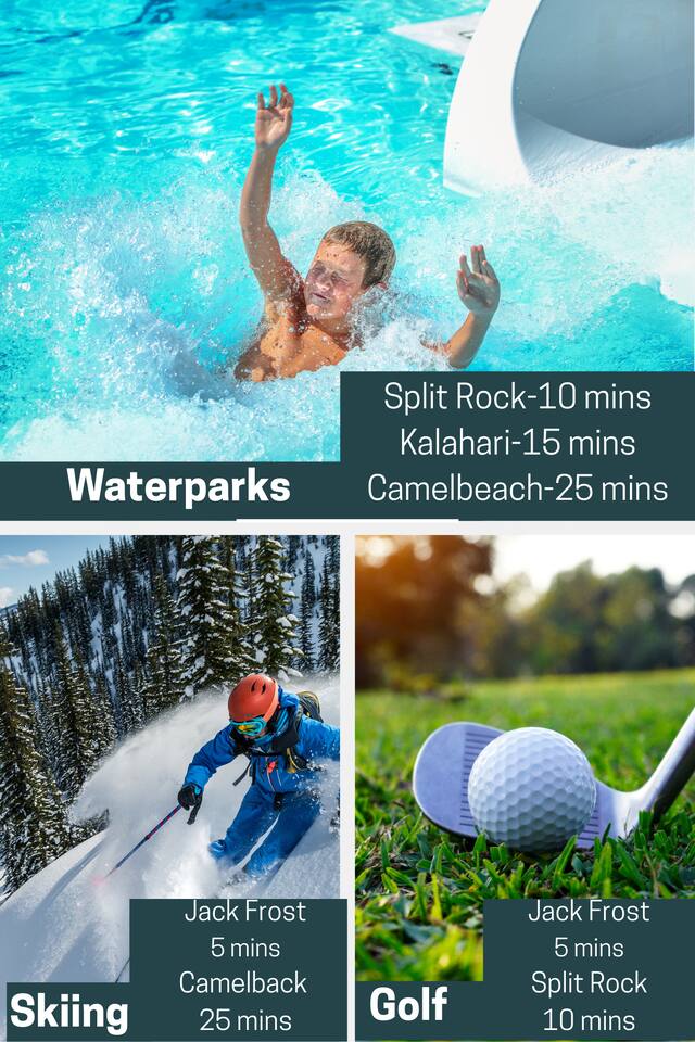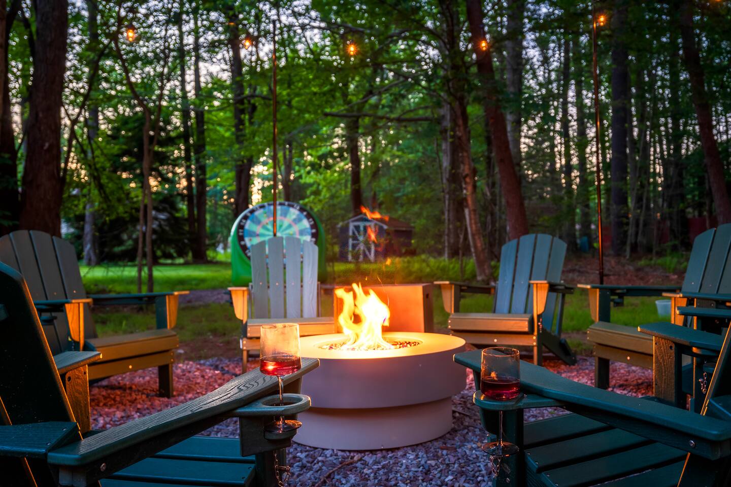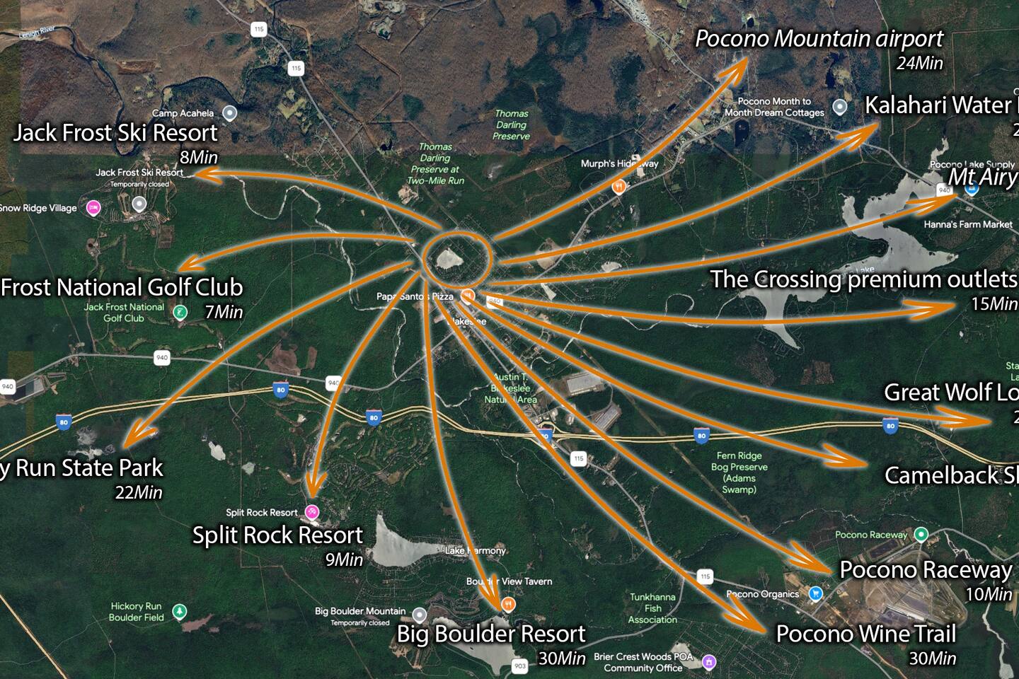 Your family’s dream retreat! Near Pocono lakes & trails (Lakes Sinca and Harmony) 3500 sq ft--separate entertainment and relaxation spaces. sleeps 16+ guests Private Hot Tub & indoor sauna 2 epic game rooms + movie theater 2 Master Suites Fully stocked kitchen 2 bars +grill Fire pit Gather for movie nights, arcade battles, or a soak under the stars. After adventures on the slopes or lake, unwind by the fireplace and rest in hotel-quality beds. Have questions? I usually reply within an hour