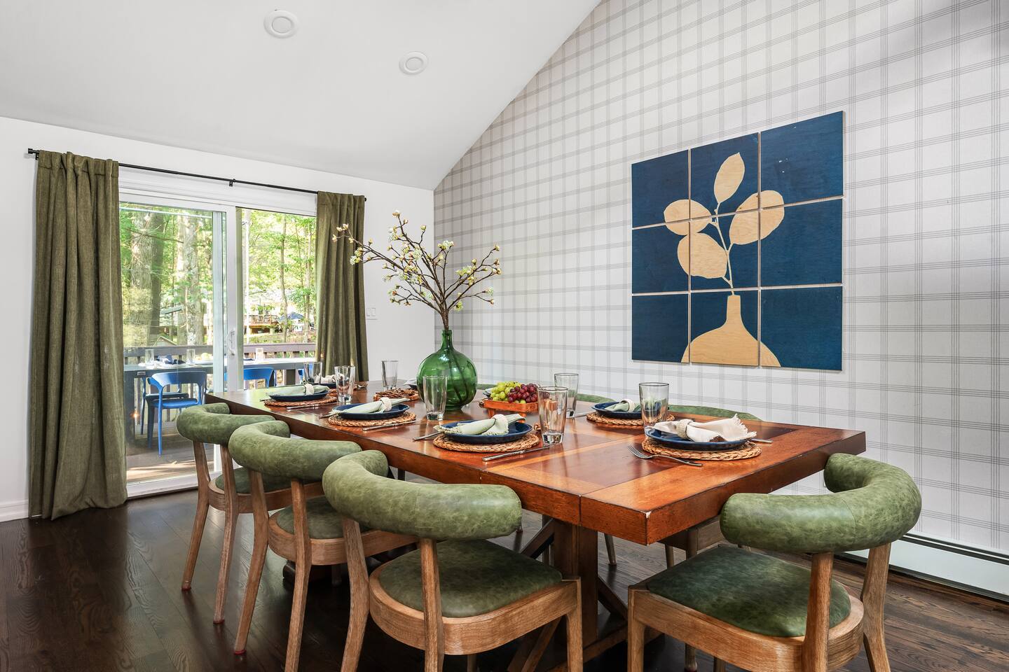 Booking party must be age 25+, and must be present at the home for the duration of the stay. Valid government issued ID must be presented upon request. FAQS IS EARLY CHECK-IN/LATE CHECKOUT AVAILABLE? Yes, schedule permitting we will accommodate your request. However, this is not available if we have scheduled maintenance or a guest checking in or out the same day. Fee schedule below: EARLY CHECK-IN/LATE CHECKOUT FEE: Guests requesting changes to the established check-in or check-out times must do so in advance. A request for a change to the check-in or check-out time is not guaranteed. This is will be assessed on a case-by-case basis based on factors such as housekeeping availability and other bookings. Additional fees will apply to check-in/check-out. Additional fees will be $100 per hour up to 3 hours, longer check-in requests will be assessed at 50% of the nightly rate on the date of the date requested. Guests who require more than 6 hours of early or late check-in/check-out are recommended to book an additional night. Discounts may be available. Message for more information. CAN YOU OFFER A DISCOUNT? Yes! We offer seasonal discounts as well as discounted weeknight stays. The longer you stay, the bigger the discount. This is a quiet residential neighborhood. Be mindful and respectful of the noise level. Township Registration #- 021150 A rental deposit is required within 48 hours of reservation.Guests with stays are also subject to a rental agreement and additional screening. House Rules can also be found in the House Rules section of the listing. PARTIES/EVENTS: No parties, events, birthdays, bachelor or bachelorette stays. Right to cancel reservation without refund and a minimum fine of $1500 will be imposed if evidence is detected. SMOKING: No smoking or vaping or use of illicit substances of any kind inside or outside the house. A $250 fee will be applied if any evidence is present to treat air and clean carpets and scrub walls. Advanced smoke and vape detection sensors are installed in indoor areas. PARKING: There is no street parking. Guest must park in the driveway at all times. cars parked on the street at any time are subject to fines and towing. FURNITURE AND OTHER HOUSEHOLD ITEMS: Please put any items you moved back in their original location before you leave. COMMUNITY AMENITIES: It is required that guests follow the community rules for the subdivision regarding guest usage of facilities and amenities such as the lake and playground. Guests must have a fishing license to fish. MAIL DELIVERY: Guests are not permitted to have mail deliveries to the home’s mailbox (deliveries to front door permitted). Deliveries will not be retrieved from mailbox for guests. EARLY CHECK-IN/LATE CHECKOUT FEE: Guests requesting changes to the established check-in or check-out times must do so in advance. A request for a change to the check-in or check-out time is not guaranteed. This is will be assessed on a case-by-case basis based on factors such as housekeeping availability and other bookings. Additional fees will apply to check-in/check-out. Additional fees will be $100 per hour up to 3 hours, longer check-in requests will be assessed at 50% of the nightly rate on the date of the date requested. Guests who require more than 6 hours of early or late check-in/check-out are recommended to book an additional night. Discounts may be available. Message for more information. MAXIMUM OCCUPANCY Occupancy is capped at 16 people. No unregistered guests overnight. Any violations (unregistered guests or visitors in the home during quiet hours) will result in additional fees per person per night of $100. TRASH Guests are asked to take the trash bin to the cans located on the small deck to the left of the front door for pick up the night before or morning of pickup (pickup on Wednesday mornings) NOISE: Please respect the rights of others to their privacy and serenity. NO loud noise, music or unruly behavior. Tobyhanna Township noise ordinance applies. Residents and neighbors have been instructed to call the police, who may issue a citation to the violator. The member/landlord may also receive a fine in accordance with POA Fine Policy, after due notice. Any noise complaints from our neighbors will result in early termination of your stay. We will dispatch our local security team to escort guests off the premises. In the event our security team is called out due to a noise complaint, guests are liable for any associated costs and expenses. PET POLICY AND FEES This Airbnb welcomes well-behaved dogs. The following pet policy ensures a comfortable stay for all guests: Dog fee: A nightly fee of $35 per dog applies to the reservation. This fee covers the additional cleaning required after furry guests. Approval required: Please provide advance notice if you plan to bring a dog and disclose the number and type of dogs accompanying you. Maximum number of dogs: A maximum of three dogs is permitted per booking. Supervision: Dogs must be supervised at all times. If a dog is left alone in the property, it must be crated to prevent potential damage or excessive barking. Consider local pet-sitting services for longer absences. Housebroken: All dogs must be housebroken. No puppies, please. Noise control: Excessive barking or disruptive behavior will not be tolerated and may result in the immediate termination of the reservation. Waste management: Please pick up after the dog both inside and outside the property. Bags and a designated waste disposal area are provided in the yard for convenience. Furniture policy: To protect furniture and linens, dogs are not permitted on the beds or furniture without protective covers. Please bring your own pet bedding or utilize the extra blankets provided for this purpose. Flea and tick treatment: The dog must be treated for fleas and ticks within 14 days of arrival. Proof of treatment may be requested. Vaccination records: Please ensure the dog's vaccinations are up-to-date. Vaccinati