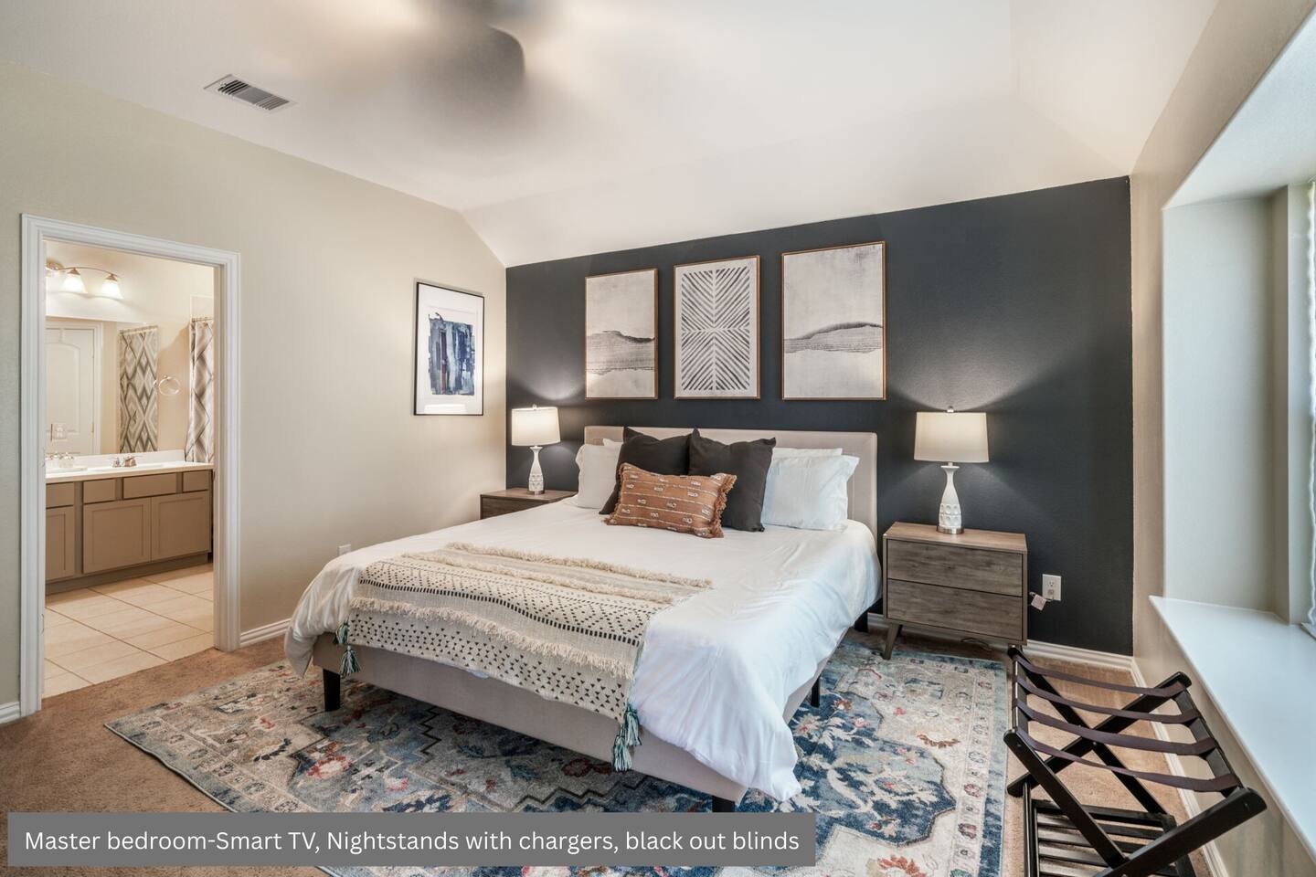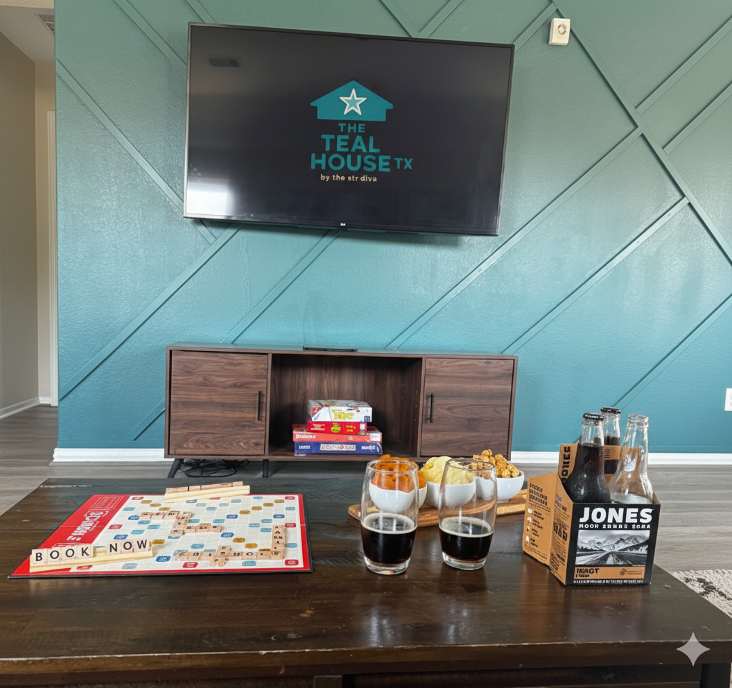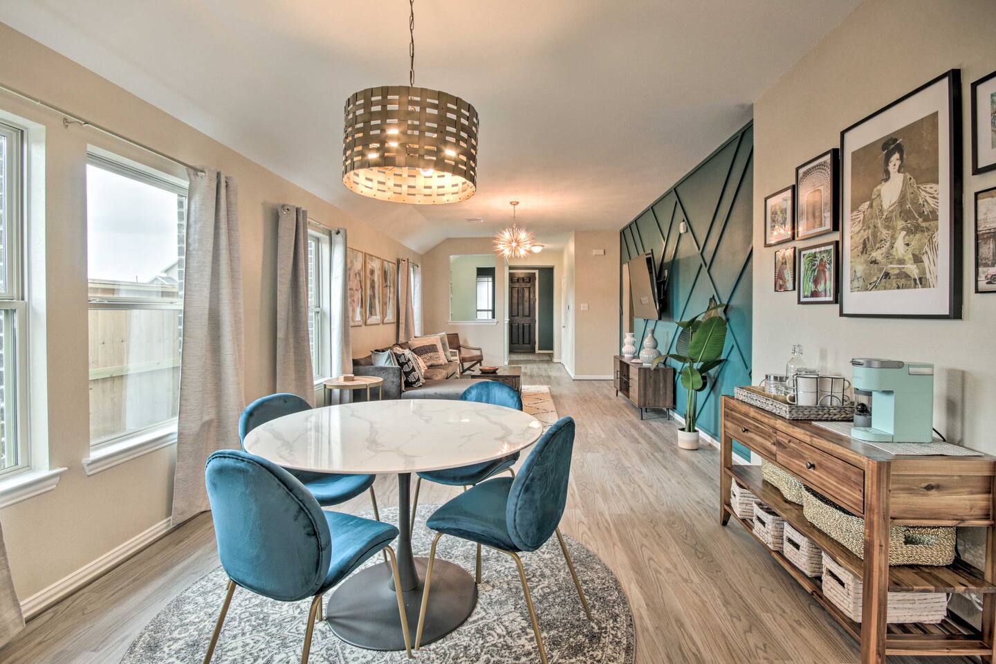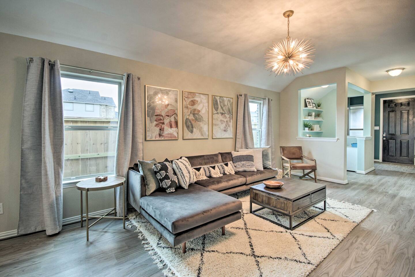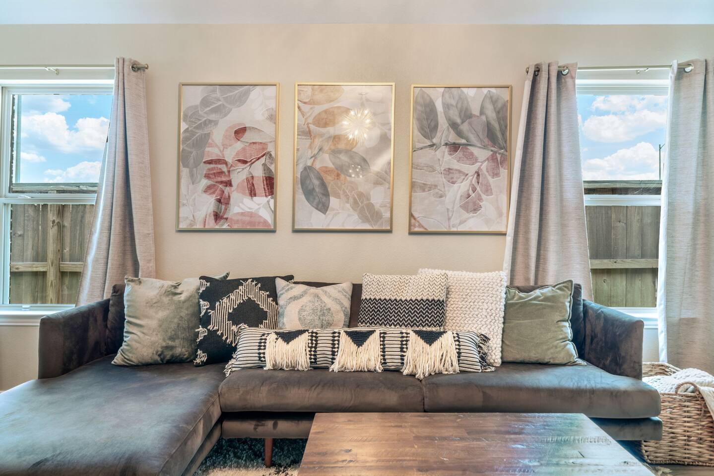 The longer you stay, the bigger the discounts. Inquire now for seasonal discounts. *Large private fenced yard *High Speed Wifi 250 mbps *Covered Furnished Patio *Well stocked kitchen-cookware/bakeware/appliances/Keurig coffee maker *Open concept living areas, great for groups *Dog friendly (we allow up to 3 furry friends with a nominal pet fee) •Smart TVs in all bedrooms and living room •Open concept office for remote work •Ample parking •Self Check-in Guest Favorite Excellence: As guest favorites, we take pride in offering exceptional hospitality. Our team is dedicated to ensuring your stay is flawless, providing prompt assistance, local recommendations, and personalized touches that make you feel right at home. •Spacious Interiors: The layout ensures privacy and comfort for all guests, with the highlight being a luxurious king bed in the master suite for a restful night's sleep. •Midcentury modern/retro-inspired living spaces: Step into our vibrant living areas, where the charm of mid-century modern design takes center stage. Sink into the plush seating and enjoy playing games or watching tv with your group. The open concept layout are perfect for groups. BEDROOMS All bedrooms have smart tvs and usb chargers! Bedroom 1: King bed (double sink w/ walk-in closet) Bedroom 2: Queen bed Bedroom 3: Two Twin beds Additional Sleeping: Twin Rollaway bed & sofa COMMUNITY AMENITIES: •Numerous walking trails (great for walking, jogging and biking) •Free kid's pool and two children's playgrounds (#1 children ages 1-5 and #2 children ages 5-12) •Picnic area with barbecue KITCHEN: Fully Stocked Kitchen: Our kitchen is fully stocked with all the essentials you need to whip up delicious meals. Enjoy the convenience of modern appliances and gather in the dedicated dining area, where you can create lasting memories over homemade feasts. •Fully equipped with new stainless steel appliances •Pots & pans •Instantpot •Rice cooker •Blender •Fully stocked coffee bar-Keurig coffee maker •Complimentary coffee and tea •Dishes, flatware, and baking pans. Large Private Backyard: Escape to our spacious and private backyard oasis. Relax on the comfortable patio furniture, soak up the sun, or indulge in outdoor dining surrounded by nature. It's the perfect retreat for unwinding and creating unforgettable moments. High-Speed WiFi: Stay connected with our high-speed WiFi throughout the property. Whether you're catching up on work, streaming your favorite shows, or sharing your vacation moments on social media, you can enjoy a reliable and fast internet connection. 4 Smart TVs: Sit back and relax with our four smart TVs equipped. Enjoy a movie night with your group or catch up on your favorite series in the comfort of our stylish living spaces. Self-Check-in with Smart Lock: Enjoy the convenience of self-check-in with our smart lock system. Arrive at your convenience and access the property seamlessly, allowing you to begin your stay without delay or the need for coordinating schedules. Kid Friendly: The house is built for family time. Toys, books and games available for toddlers and young children. The house is stocked with a Pack N Play and highchair for your kids and toddlers. Proximity to Bush International Airport: Our home is conveniently located near Bush International Airport, making it an excellent choice for travelers. Whether you're arriving or departing, you'll appreciate the ease and proximity, ensuring an stress-free journey. Dedicated Office Space: Separate Office space that is perfect for remote work or school. This open concept room is connected to common areas and is very well-lit. Extra long desk and comfy desk chair. OUTDOOR LIVING: Fully furnished covered patio and a large fenced-in backyard. GENERAL AMENITIES: •Central air and heat •complimentary toiletries •linens/towels, •in-unit washer/dryer •Smartlock-keyless entry •safe +security system •iron and ironing pad •hairdryer, •laundry + dishwashing detergent provided •environmentally friendly microfiber towels for clean-up. SECURITY: 3 external security cameras in front and back yard (facing outwards), home safe to secure personal belongings. There is also a security alarm system. We use a privacy safe noise monitoring system that tracks decibel levels only in common areas. These devices do not record audio and are soley used to prevent disturbances, protect our home and ensure a peaceful environment for everyone. PARKING: •Free driveway parking available for 2-3 cars. No overnight street parking.