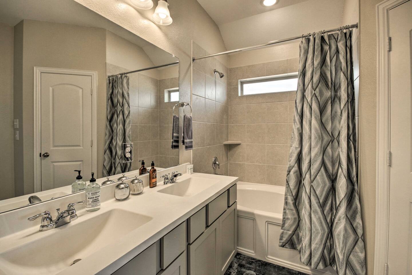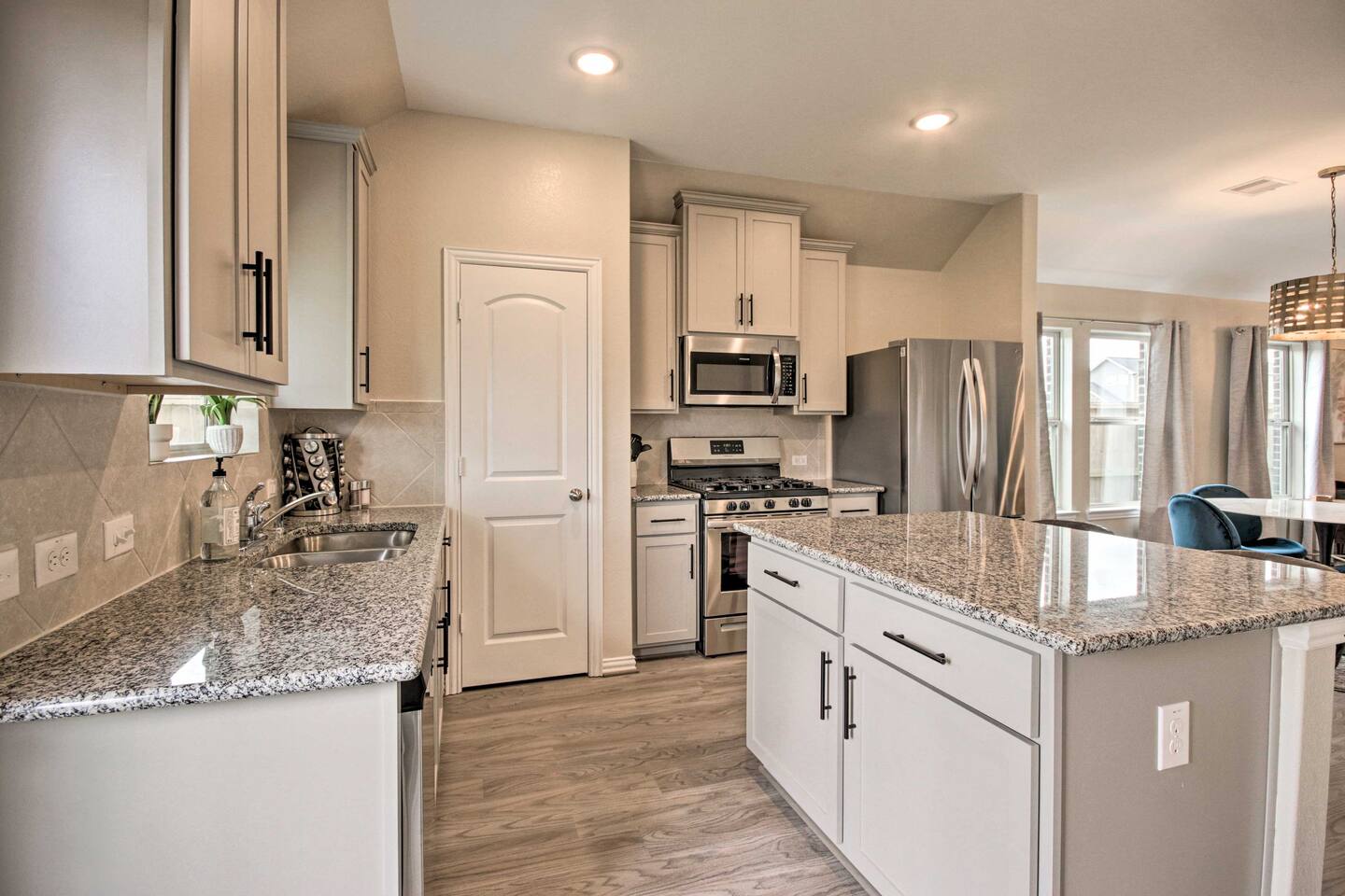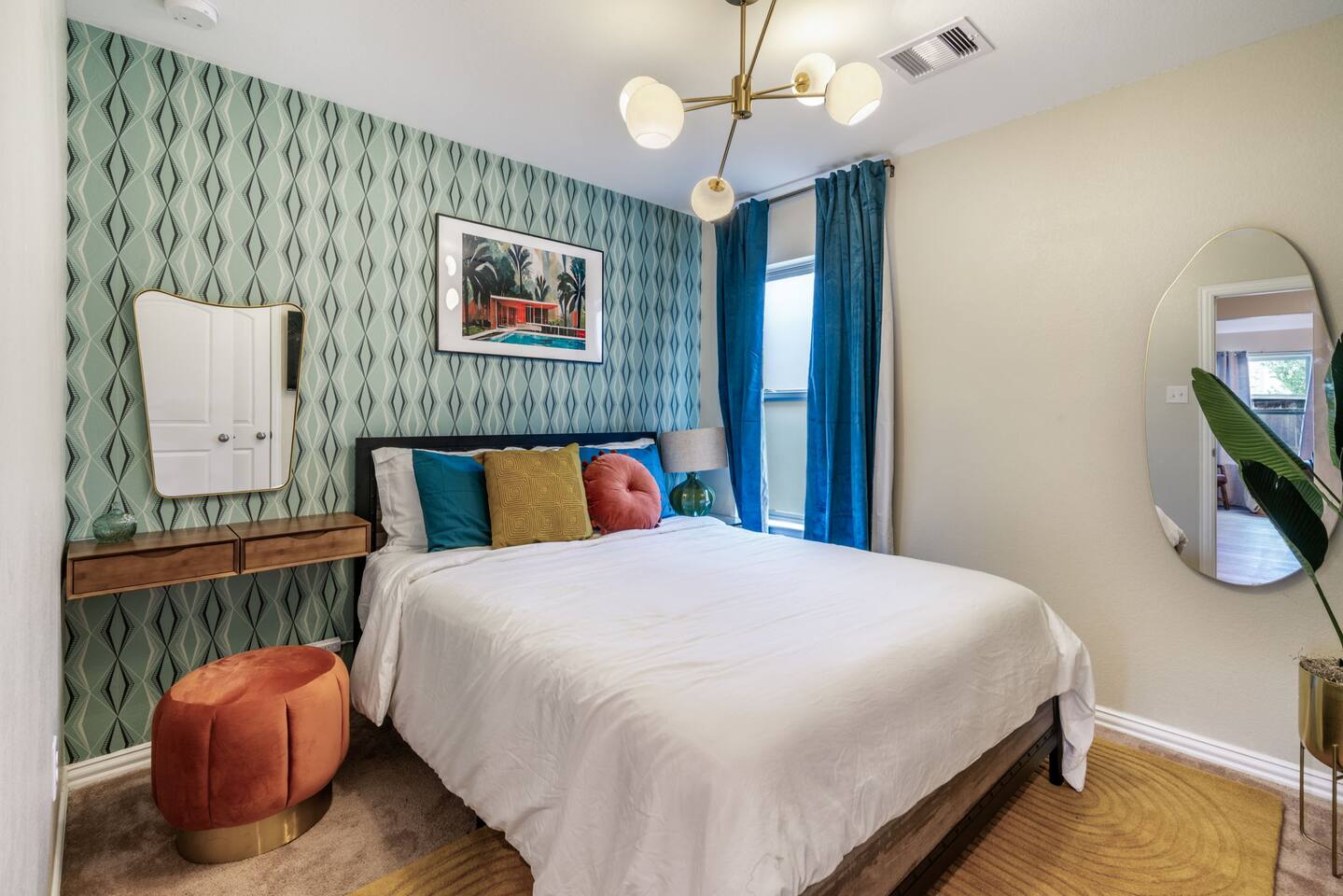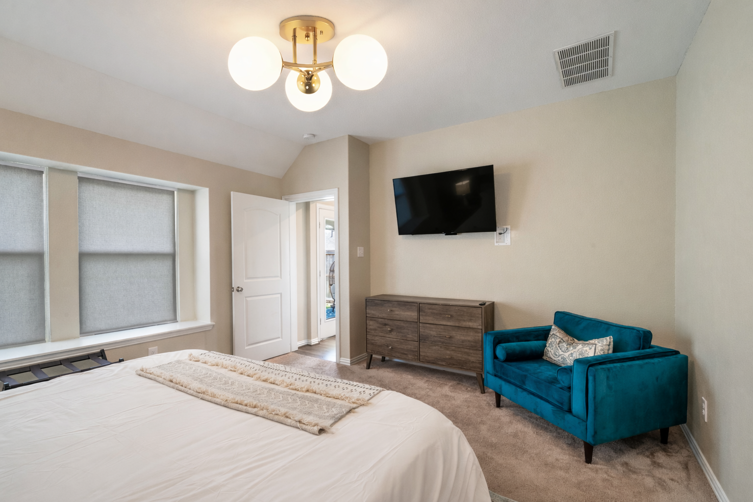 The longer you stay, the bigger the discounts. Inquire now for seasonal discounts. *Large private fenced yard *High Speed Wifi 250 mbps *Covered Furnished Patio *Well stocked kitchen-cookware/bakeware/appliances/Keurig coffee maker *Open concept living areas, great for groups *Dog friendly (we allow up to 3 furry friends with a nominal pet fee) •Smart TVs in all bedrooms and living room •Open concept office for remote work •Ample parking •Self Check-in Guest Favorite Excellence: As guest favorites, we take pride in offering exceptional hospitality. Our team is dedicated to ensuring your stay is flawless, providing prompt assistance, local recommendations, and personalized touches that make you feel right at home. •Spacious Interiors: The layout ensures privacy and comfort for all guests, with the highlight being a luxurious king bed in the master suite for a restful night's sleep. •Midcentury modern/retro-inspired living spaces: Step into our vibrant living areas, where the charm of mid-century modern design takes center stage. Sink into the plush seating and enjoy playing games or watching tv with your group. The open concept layout are perfect for groups. BEDROOMS All bedrooms have smart tvs and usb chargers! Bedroom 1: King bed (double sink w/ walk-in closet) Bedroom 2: Queen bed Bedroom 3: Two Twin beds Additional Sleeping: Twin Rollaway bed & sofa COMMUNITY AMENITIES: •Numerous walking trails (great for walking, jogging and biking) •Free kid's pool and two children's playgrounds (#1 children ages 1-5 and #2 children ages 5-12) •Picnic area with barbecue KITCHEN: Fully Stocked Kitchen: Our kitchen is fully stocked with all the essentials you need to whip up delicious meals. Enjoy the convenience of modern appliances and gather in the dedicated dining area, where you can create lasting memories over homemade feasts. •Fully equipped with new stainless steel appliances •Pots & pans •Instantpot •Rice cooker •Blender •Fully stocked coffee bar-Keurig coffee maker •Complimentary coffee and tea •Dishes, flatware, and baking pans. Large Private Backyard: Escape to our spacious and private backyard oasis. Relax on the comfortable patio furniture, soak up the sun, or indulge in outdoor dining surrounded by nature. It's the perfect retreat for unwinding and creating unforgettable moments. High-Speed WiFi: Stay connected with our high-speed WiFi throughout the property. Whether you're catching up on work, streaming your favorite shows, or sharing your vacation moments on social media, you can enjoy a reliable and fast internet connection. 4 Smart TVs: Sit back and relax with our four smart TVs equipped. Enjoy a movie night with your group or catch up on your favorite series in the comfort of our stylish living spaces. Self-Check-in with Smart Lock: Enjoy the convenience of self-check-in with our smart lock system. Arrive at your convenience and access the property seamlessly, allowing you to begin your stay without delay or the need for coordinating schedules. Kid Friendly: The house is built for family time. Toys, books and games available for toddlers and young children. The house is stocked with a Pack N Play and highchair for your kids and toddlers. Proximity to Bush International Airport: Our home is conveniently located near Bush International Airport, making it an excellent choice for travelers. Whether you're arriving or departing, you'll appreciate the ease and proximity, ensuring an stress-free journey. Dedicated Office Space: Separate Office space that is perfect for remote work or school. This open concept room is connected to common areas and is very well-lit. Extra long desk and comfy desk chair. OUTDOOR LIVING: Fully furnished covered patio and a large fenced-in backyard. GENERAL AMENITIES: •Central air and heat •complimentary toiletries •linens/towels, •in-unit washer/dryer •Smartlock-keyless entry •safe +security system •iron and ironing pad •hairdryer, •laundry + dishwashing detergent provided •environmentally friendly microfiber towels for clean-up. SECURITY: 3 external security cameras in front and back yard (facing outwards), home safe to secure personal belongings. There is also a security alarm system. We use a privacy safe noise monitoring system that tracks decibel levels only in common areas. These devices do not record audio and are soley used to prevent disturbances, protect our home and ensure a peaceful environment for everyone. PARKING: •Free driveway parking available for 2-3 cars. No overnight street parking.