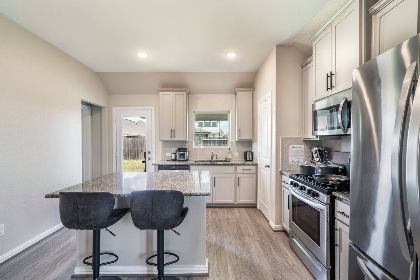 This ‘Guest Favorite’ will be an unforgettable experience, offering: 🛏️ Luxurious king bed master bedroom with ensuite 🌳 Large fenced backyard & covered patio 🍳 Gourmet stocked kitchen with everything you need 💻 Dedicated office space for work or study Pet & kid-friendly amenities to welcome the whole family 🚗 Quick trip to Houston and IAH airport (just 18 minutes) 🔒 Safety- alarm system An ideal choice for families or groups seeking a comfortable and memorable stay!